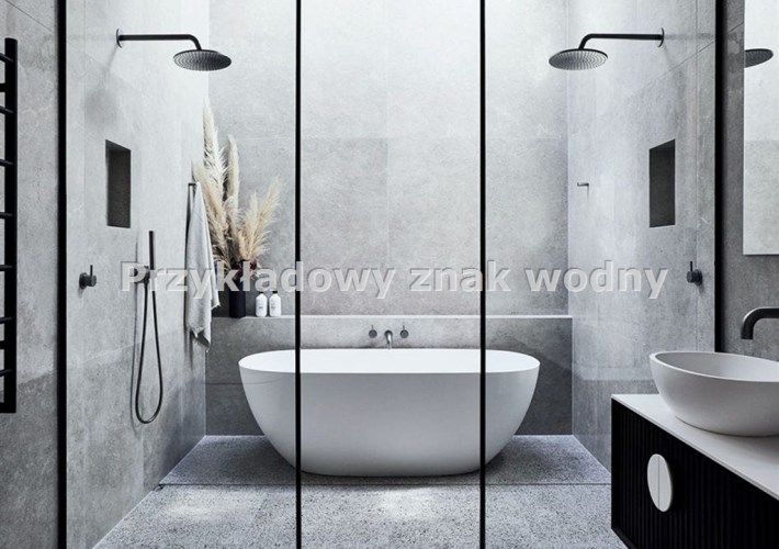 - łazienka z toaletą o pow. 5m2, armatura: przestronny natrysk, umywalka, miska ustępowa wisząca, pralka, oświetlenie w różnych odcieniach ciepła sterowane na pilota